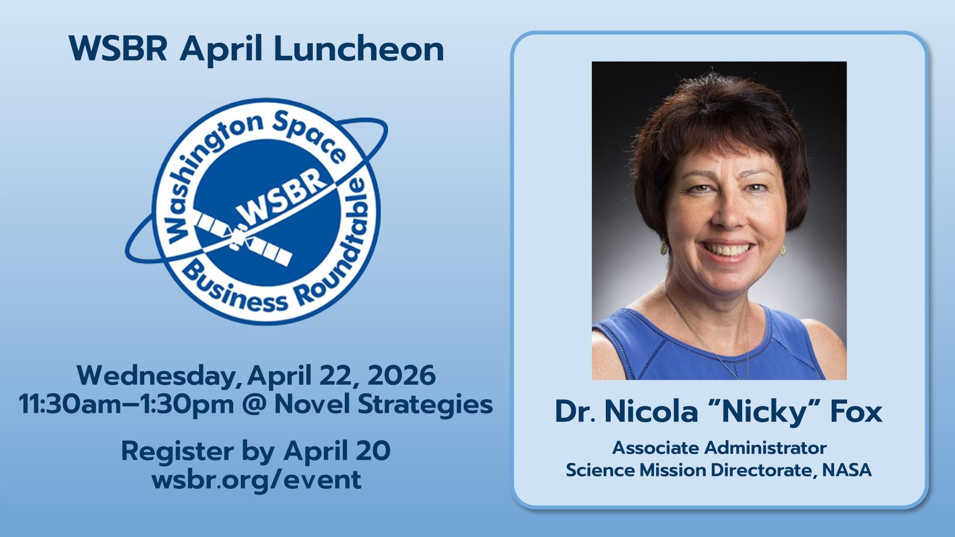 WSBR April Luncheon Featuring Dr. Nicola Fox, Associate Administrator, Science Mission Directorate, NASA